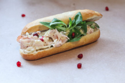 Broodje tonijn met romige Zamora-aubergine-roomkaas, frisse sla en malse tonijn.