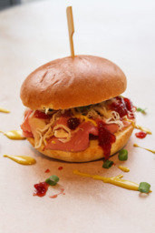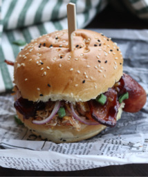 Broodje chili chicken met cowlsla en streaky rookworst