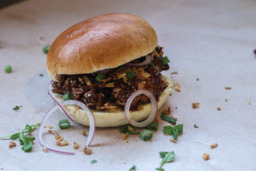 Broodje pork belly met Zeeuws spek, BBQ-saus of pittige mayo en frisse rodekoolsla.
